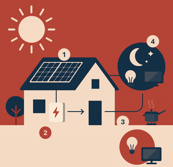 Door een thuisbatterij te combineren met je zonnepanelen sla je die opgewekte energie gewoon zelf op. Zo gebruik je ’s avonds en ’s nachts je eigen zonnestroom, zonder afhankelijk te zijn van dure piektarieven.